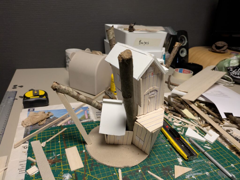2. I’ve cut the base out of cardboard and started building the cabin.